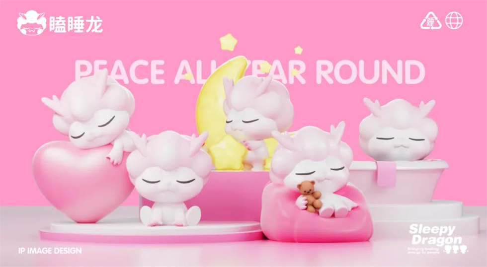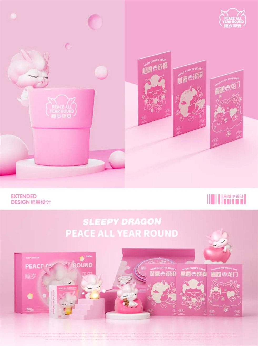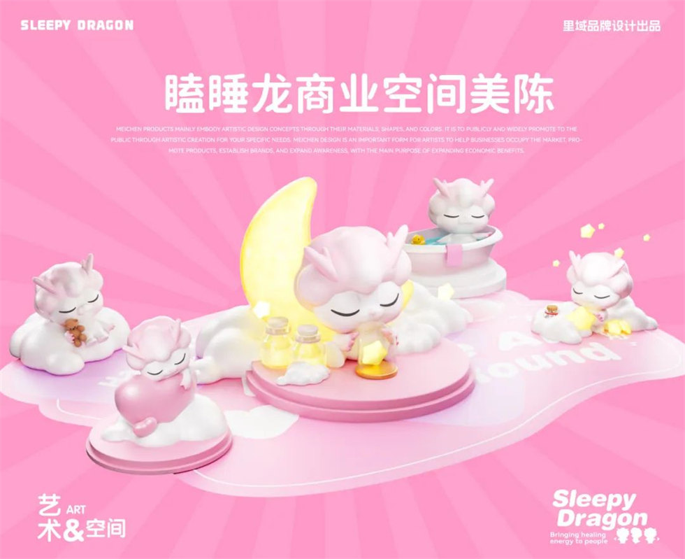 “睡歲平安”,用來表達現(xiàn)在打工人的心聲真的再適合不過了。粉白的瞌睡龍IP形象設計更是讓人驚艷,相信放在商場,絕對吸引無數(shù)女生前來打卡!